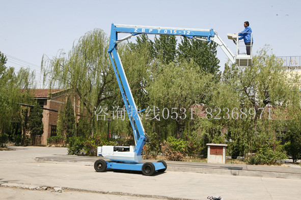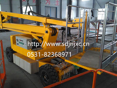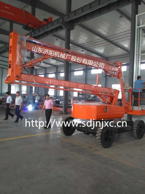 自行式折臂升降機,利用柴油機為動力,加電瓶采用電啟動,適用于野外及無電源場所作業(yè),自支腿、自升降、自行走,360°旋轉(zhuǎn)作業(yè)。本產(chǎn)品具有操作簡單,使用方便,作業(yè)面大,特別是能夠懸伸作業(yè),跨越一定的障礙物或在一處升降,可進行大范圍多點升降作業(yè)的特點,極大地提高了工作效率。該系列高空作業(yè)平臺車廣泛用于市政、電力、路燈、公路、碼頭、廣告、園林、小區(qū)物業(yè)、廠礦企業(yè)車間等行業(yè)范圍升降作業(yè)。上升,下降,旋轉(zhuǎn)(360度)、探出等操作,易于跨越障礙到達(dá)工作位置,在不同情況下快,慢行走(前進,后退,轉(zhuǎn)方向)。